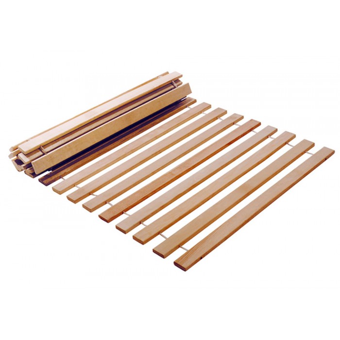 Lattes roulables en peuplier, assemblées avec un fil nylon et entretoises plastiques. Conseillé pour les lits avec tatamis. Finition soignée.