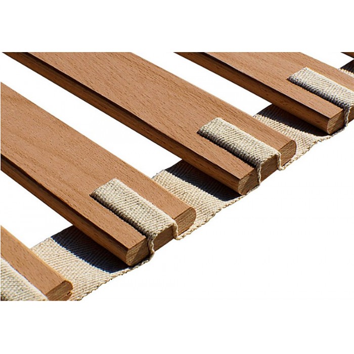 Lattes roulables en peuplier, assemblées avec une bande de coton entrelacent chaque latte en la maintenant à distance égale avec les autres. Silencieux, se sommier est conseillé pour tous les lits avec matelas ou futons. Finition soignée.