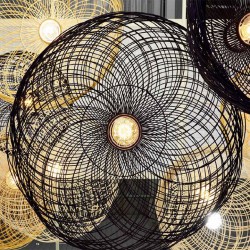 Belle suspension réalisée en grosses fibres de rotin entrelacées. Elle éclaire une pièce en douceur, sa présence discrète et naturelle joue avec la lumière. Crée par la designer française Elise Fouin.