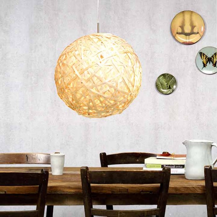 City Light apporte une lampe brute et contemporaine en bambou, artisanale et très solide. livrée avec le support d'ampoule qui l'insert au milieu de la sphère.