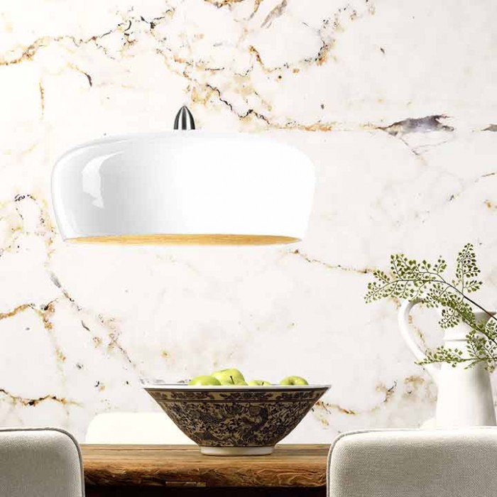 Technique artisanale traditionnelle et naturelle pour une suspension moderne au design d'aujourd'hui... Extérieur laqué blanc.