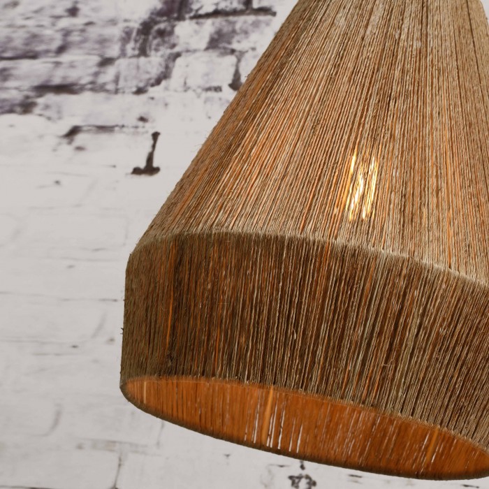 La grande suspension IGUAZU est réalisée en fibres de jute naturelle. Elle offre une lumière agréable et une ambiance chaleureuse.