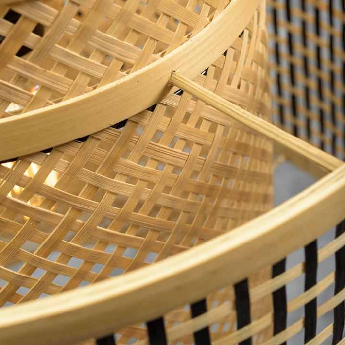 Belle lampe de MOJO... BHUTAN est une lampe qui, avec son double cylindre, illumine un intérieur simplement, quelques lamelles de bambou et bonsoir l'ambiance.