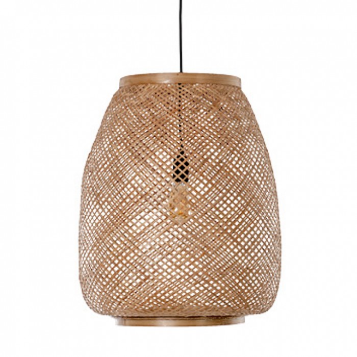 Grande lampe en vannerie de bambou traditionnelle.