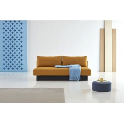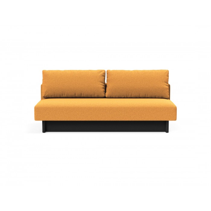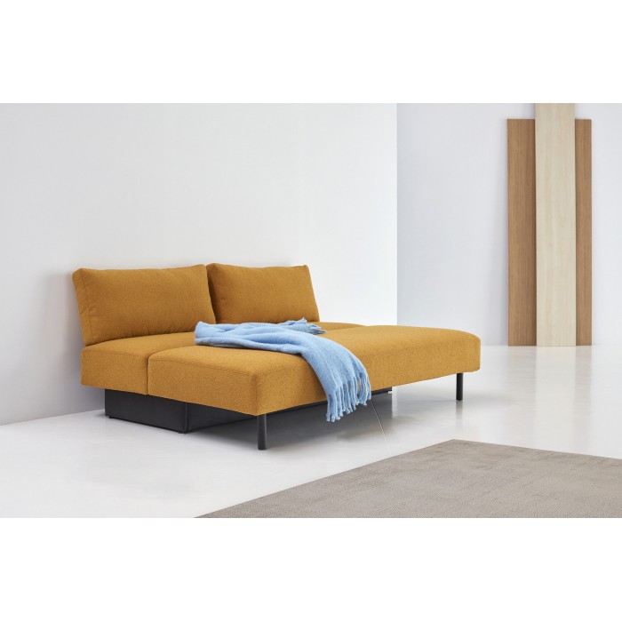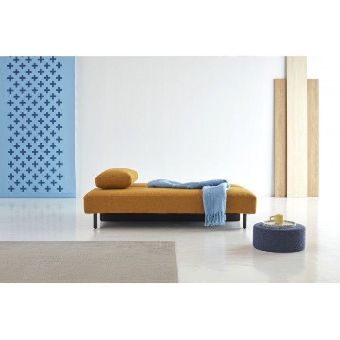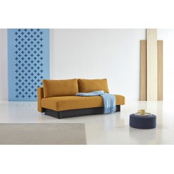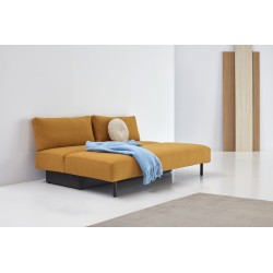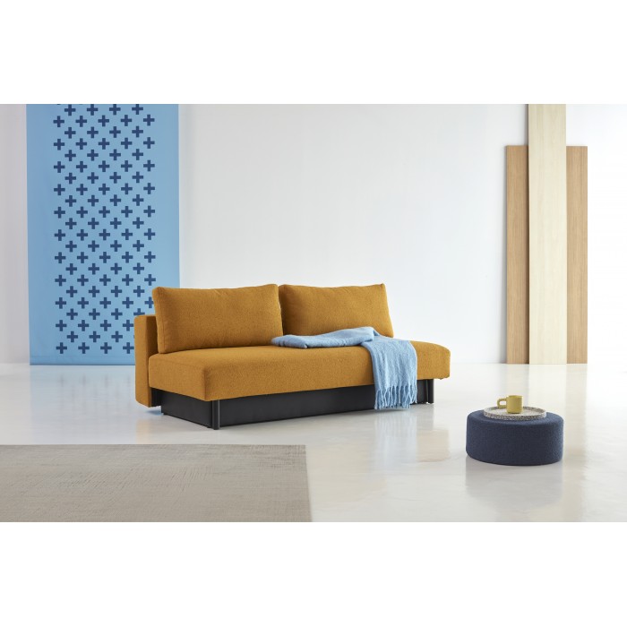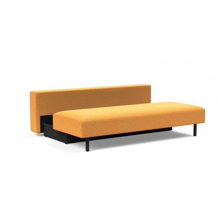 Merga se caractérise par un siège spacieux arrondi, de grands coussins de dossier et une boîte de rangement spacieuse. Doté de pieds en chêne laqué noir, d'un confort moelleux unique et d'engrenages qui assurent une conversion facile du canapé au lit.
