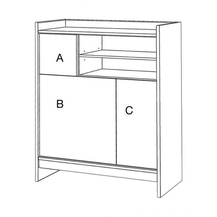 Composez votre chiffonnier : porte (3 formats possibles), tiroir ou niche, choisissez la configuration qui vous convient. De complètement fermé à totalement ouvert, de multiples combinaisons sont possibles.