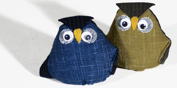 Hibou en tissu, rempli de sarrazin.