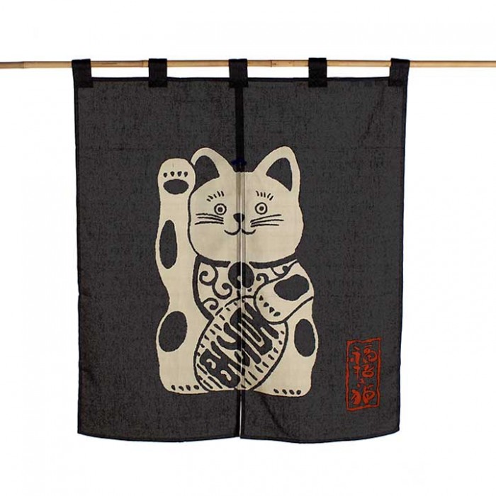 Petit rideau de porte, en coton, représentant le chat porte-bonheur des japonais.
