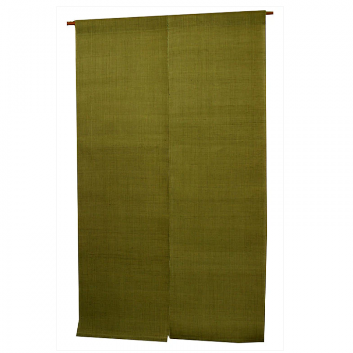 Noren en lin (100%) uni de couleur kaki, tissé et teint à la main.