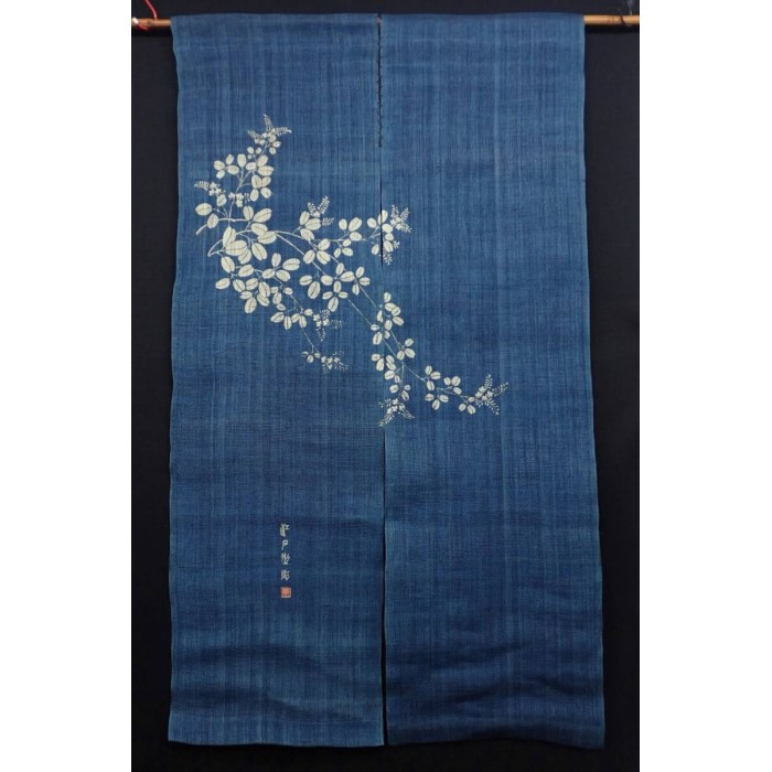Ce noren est destiné à un usage intérieur uniquement. Pour éviter la décoloration, veuillez éviter de l'utiliser à l'extérieur. De plus, en raison des caractéristiques du colorant, une décoloration peut se produire lorsqu’il est mouillé avec de l’eau. Veuillez éviter de l'utiliser dans des endroits où il sera mouillé par la pluie, etc.