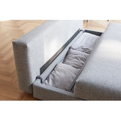 Osvald est un canapé-lit spacieux, confortable et peu encombrant équipé d'un grand coffre de rangement.