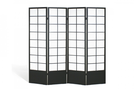 Paravent à 4 panneaux. La structure est en bois verni noir tendu de papier translucide. Chaque élément à 45 cm de large.