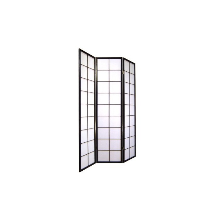Paravent à 3 panneaux. La structure est en bois est en bois nature tendu de papier translucide. Chaque élément à 45 cm de large.
