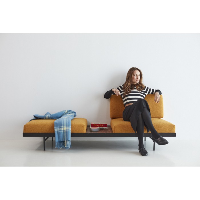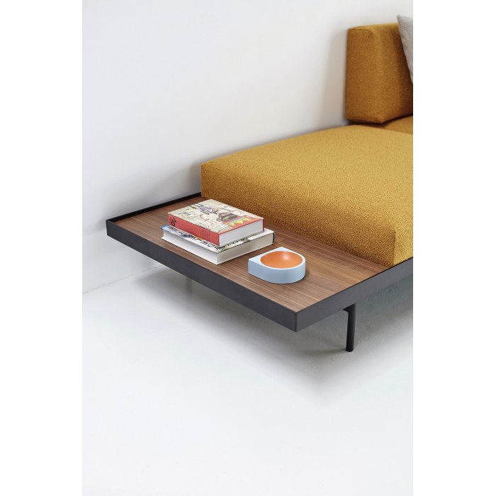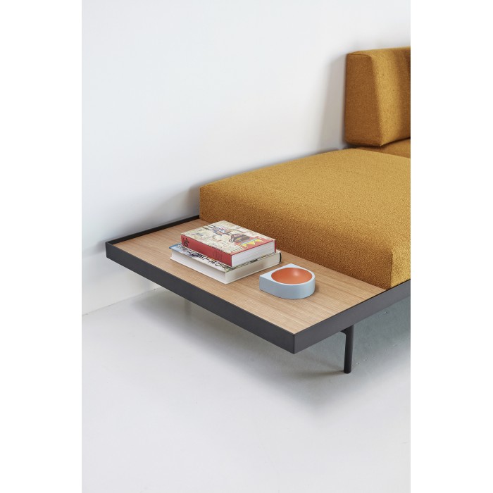Puri est le résultat d'un design où chaque détail et matériau a été évalué et priorisé dans un souci de durabilité. Avec un design flexible, Puri permet de s'asseoir et de se prélasser confortablement. Les housses sont détachables et lavables en machine à 30 degrés Celsius. Les housses détachables offrent également la possibilité de renouveler le look en achetant de nouvelles housses dans un tissu différent. Puri est livré avec un coussin de dossier et un plateau en chêne laqué ou en noyer laqué. Un coussin de dossier supplémentaire peut être acheté séparément.