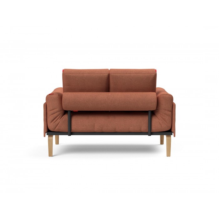 Rollo est un lit de jour luxueux qui regorge de fonctionnalités pour faciliter la vie dans les petits espaces. Sa conception multifonctionnelle lui permet de servir de canapé à deux places, de lit de jour ordinaire ou de couchette pour une personne. Les accoudoirs se relèvent et se baissent facilement grâce aux mécaniques, et le réglage est progressif. Pour assurer un confort parfait, Rollo est livré avec un matelas classique fait à la main, un coussin de traversin dorsal et deux coussins carrés.