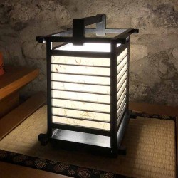Lampe de table japonaise fabriquée aux Philippines. Harmonie stylisée du Japon, elle apporte une lumière douce et sereine dans votre chambre.