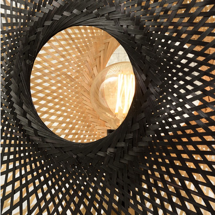 Lampe de table très décorative en lamelles de bambou tissées. Noir d'un côté et naturel de l'autre, elle vous laisse un choix d'ambiance.
