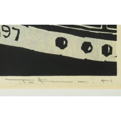 Takuma Hanawa was born in 1947 in Hachioji City in the larger Tokyo area. In 1972 he graduated from the famous Musashino Art College. He had learned woodblock printmaking from Mr. Shirodokoro. In 1973 he came to France for further art studies. He remained for two years. Since then the ties of Mr. Takuma Hanawa with France and other parts of Europe have been kept alive. And it is obvious that his art studies and his experience with life in France has a strong influence on the artist's subjects and style.