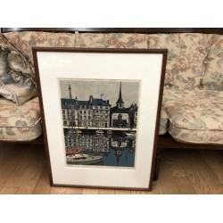 Takuma Hanawa was born in 1947 in Hachioji City in the larger Tokyo area. In 1972 he graduated from the famous Musashino Art College. He had learned woodblock printmaking from Mr. Shirodokoro. In 1973 he came to France for further art studies. He remained for two years. Since then the ties of Mr. Takuma Hanawa with France and other parts of Europe have been kept alive. And it is obvious that his art studies and his experience with life in France has a strong influence on the artist's subjects and style.