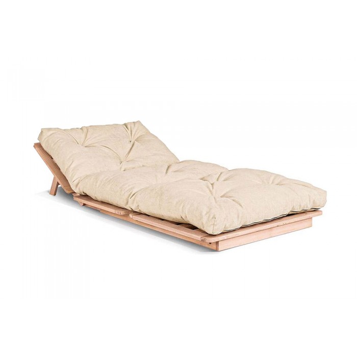 Ce canapé-lit séduit par son style relax et minimaliste, sa qualité pour un prix abordable. Il est fabriqué en bois certifié FSC. Les lattes sont rabotées et arrondies propres, montées et vissées sur les traverses. Choix de housses colorées sous Housse de futon.