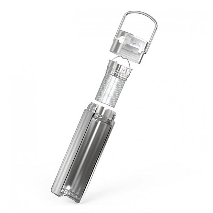 La bouteille est munie d'une anse large, très pratique; le couvercle s'ouvre d'une seule main en appuyant sur le bouton et elle est dotée d'un bec verseur pour servir ou boire. Le filtre (infuseur) en acier inox permet de préparer les boissons directement dans la bouteille, qui seront conservées froides ou chaudes.