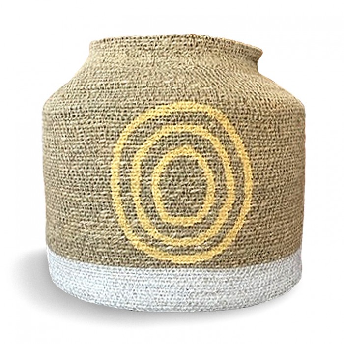 Panière en jacinthe d'eau de forme légèrement évasée, avec un joli motif simple blanc