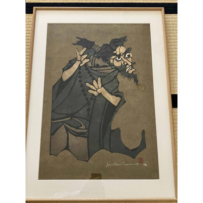 Yoshitoshi Mori was a 20th century Japanese artist who specialized in kappazuri stencil prints. For many years he belonged to the Mingei folk craft movement, where he produced stencil-dyed textiles and other textile arts. It was not until the 1950s that Mori began to work with paper, yet he quickly became known as one of the foremost artists of the Sosaku Hanga movement. Yoshitoshi Mori is said to have influenced several major 20th century print artists, including Shiko Munakata and Hiromitsu Takahashi.