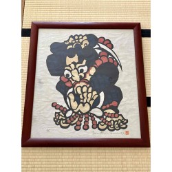 Yoshitoshi Mori was a 20th century Japanese artist who specialized in kappazuri stencil prints. For many years he belonged to the Mingei folk craft movement, where he produced stencil-dyed textiles and other textile arts. It was not until the 1950s that Mori began to work with paper, yet he quickly became known as one of the foremost artists of the Sosaku Hanga movement. Yoshitoshi Mori is said to have influenced several major 20th century print artists, including Shiko Munakata and Hiromitsu Takahashi.
