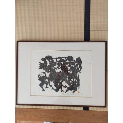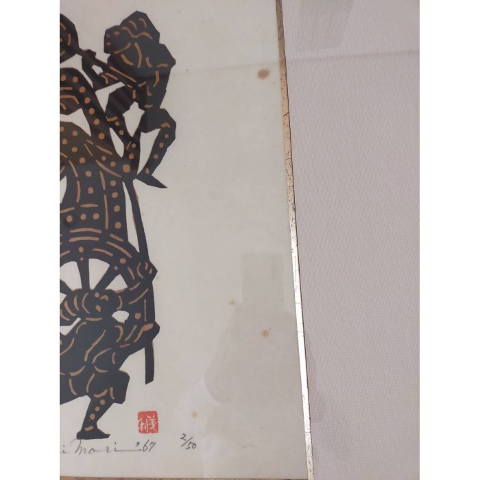 Mori's stencil prints depict the past world of Tokyo's plebeian lowlands, the so-called Shitamachi, with its festivals, craftsmen and women of the demimonde. The mainstay of his great talent lies in his ability to not merely capture detail, but to boldly evoke emotions through his highly stylized designs.