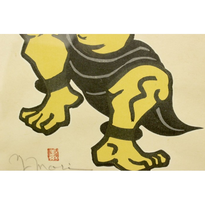 Yoshitoshi Mori was a 20th century Japanese artist who specialized in kappazuri stencil prints. For many years he belonged to the Mingei folk craft movement, where he produced stencil-dyed textiles and other textile arts. It was not until the 1950s that Mori began to work with paper, yet he quickly became known as one of the foremost artists of the Sosaku Hanga movement. Yoshitoshi Mori is said to have influenced several major 20th century print artists, including Shiko Munakata and Hiromitsu Takahashi.