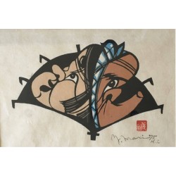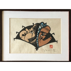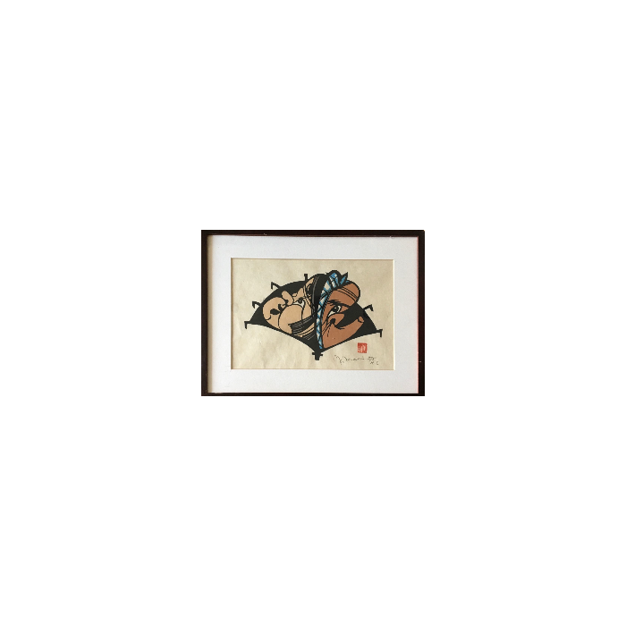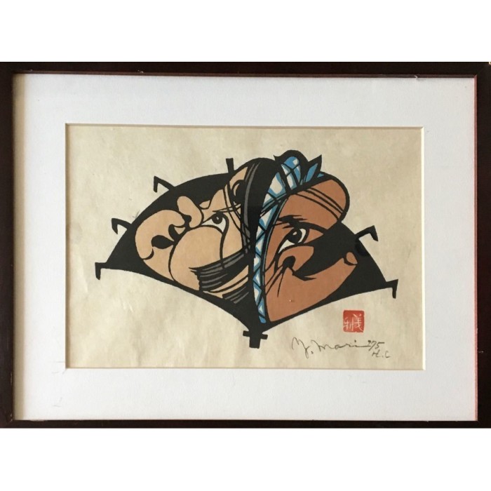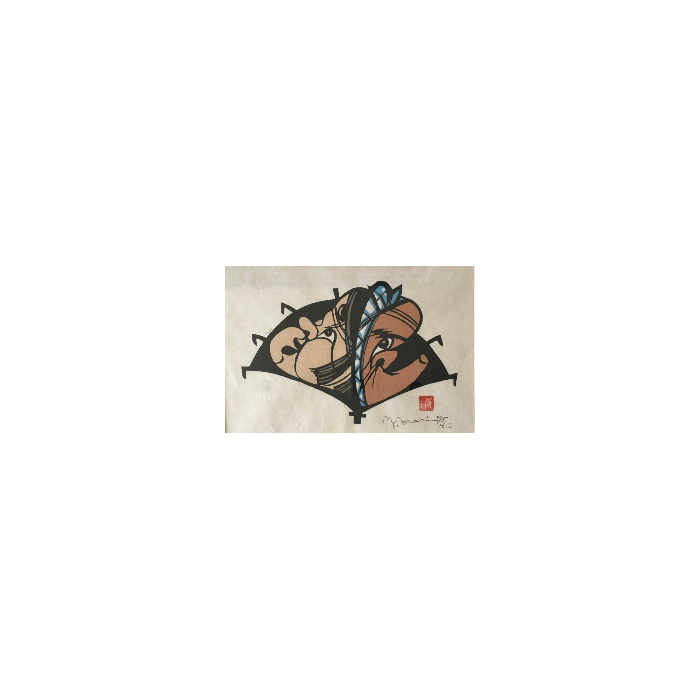 Yoshitoshi Mori was a 20th century Japanese artist who specialized in kappazuri stencil prints. For many years he belonged to the Mingei folk craft movement, where he produced stencil-dyed textiles and other textile arts. It was not until the 1950s that Mori began to work with paper, yet he quickly became known as one of the foremost artists of the Sosaku Hanga movement. Yoshitoshi Mori is said to have influenced several major 20th century print artists, including Shiko Munakata and Hiromitsu Takahashi.