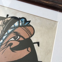 Mori's stencil prints depict the past world of Tokyo's plebeian lowlands, the so-called Shitamachi, with its festivals, craftsmen and women of the demimonde. The mainstay of his great talent lies in his ability to not merely capture detail, but to boldly evoke emotions through his highly stylized designs.