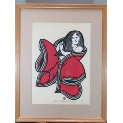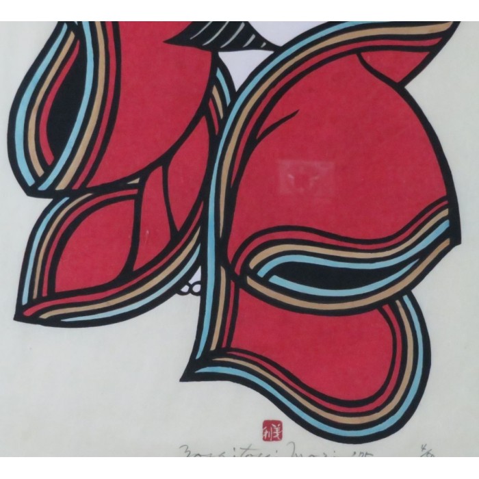 Mori's stencil prints depict the past world of Tokyo's plebeian lowlands, the so-called Shitamachi, with its festivals, craftsmen and women of the demimonde. The mainstay of his great talent lies in his ability to not merely capture detail, but to boldly evoke emotions through his highly stylized designs.