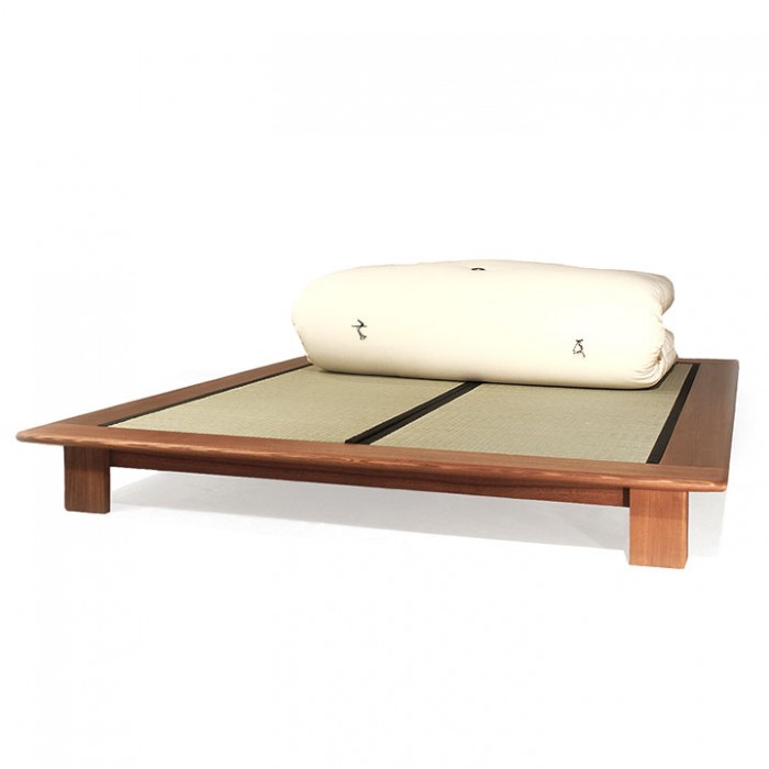 Lit en frêne de Suisse, massif (FSC), huilé ou teinté à l'eau avec un verni hydro incolore. Très beau dans les grandes dimensions, tous les types de matelas s'adaptent bien avec des lattes, mais le tatami lui donne son caractère japonais. Les angles sont arrondis sur les bords et dans les angles. Montage facile sans métal, assemblage par tenons et mortaises.